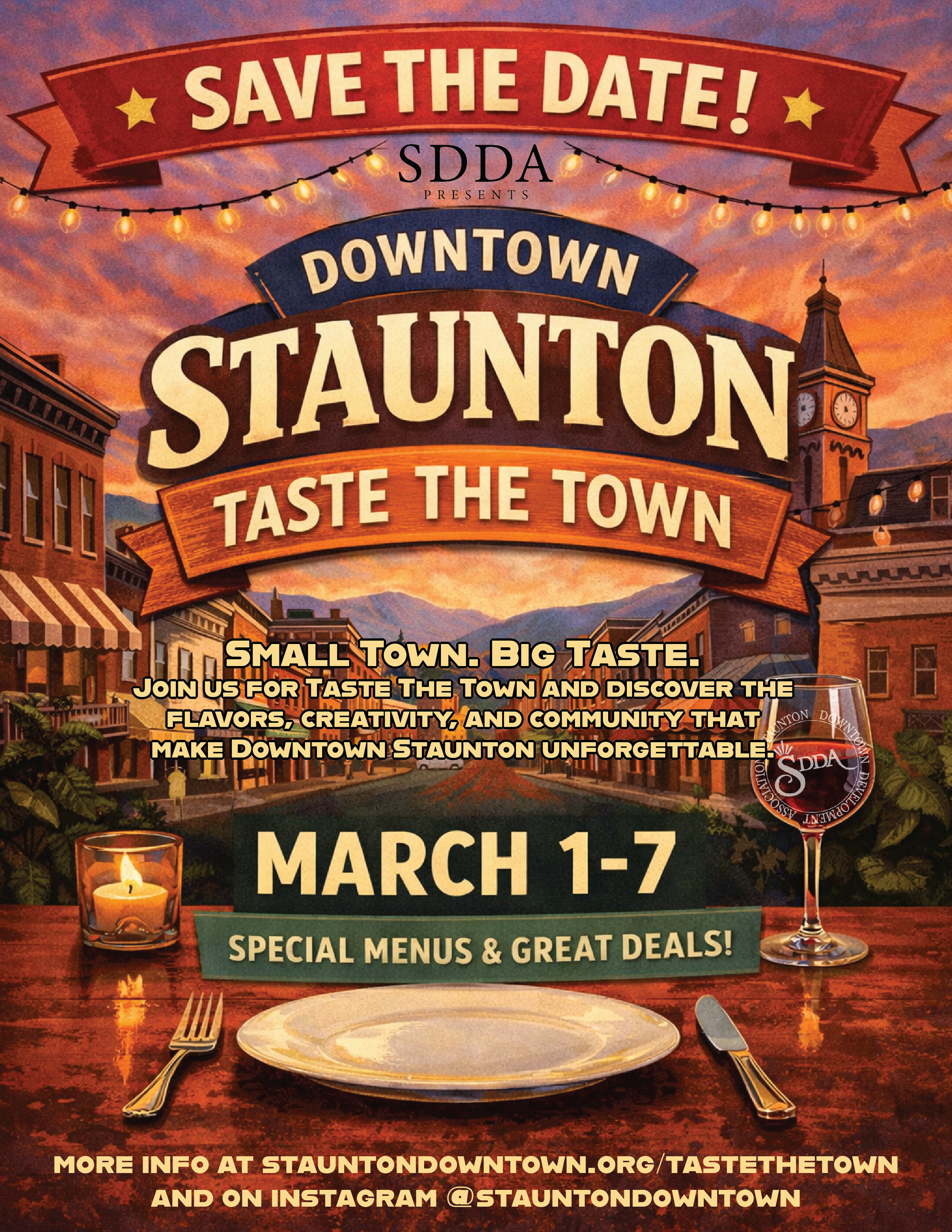 Taste The TownA Celebration of Downtown Staunton’s Eateries, March 1-7 Stay Tuned for Taste The Town Participation and Specials!